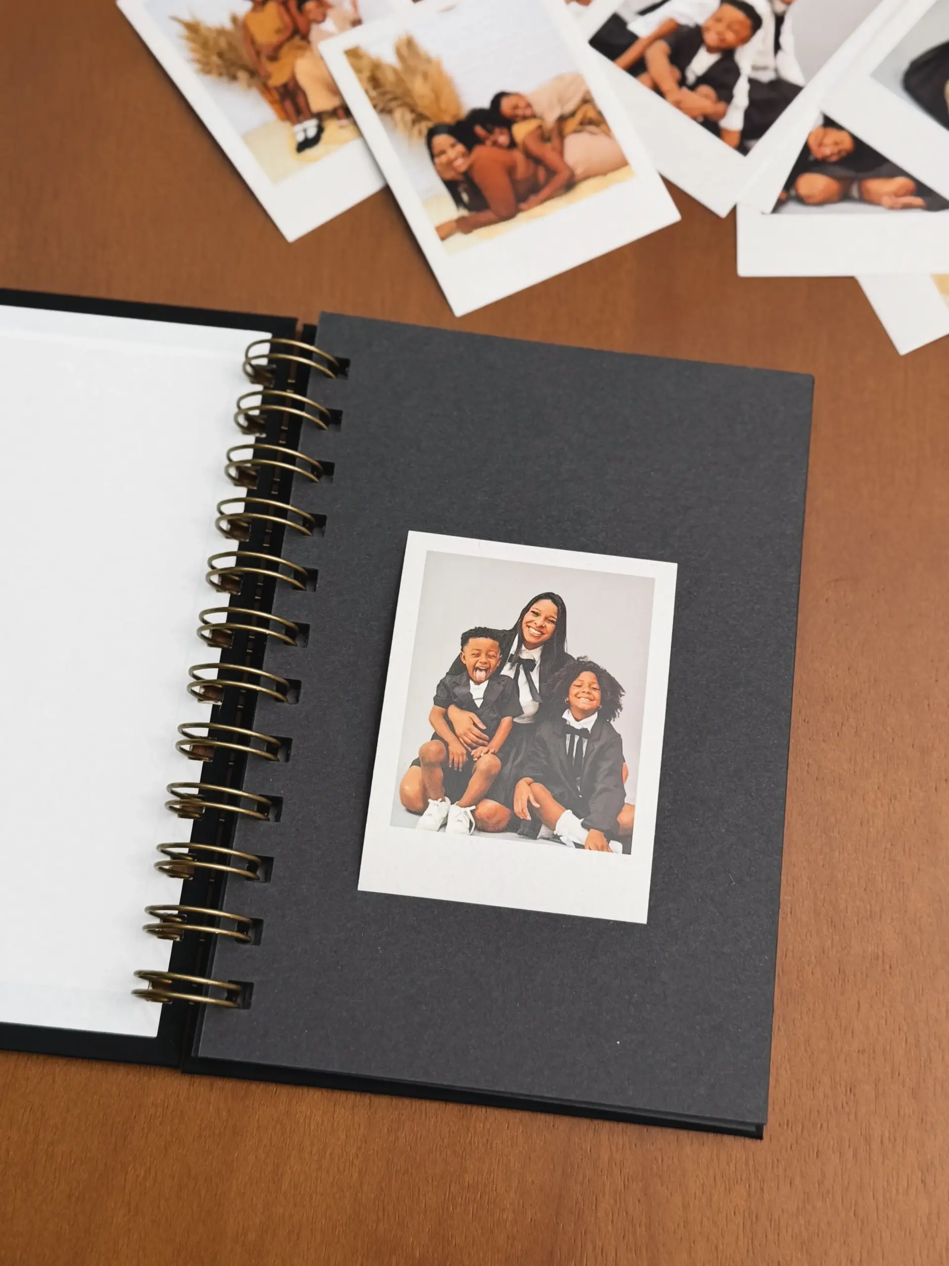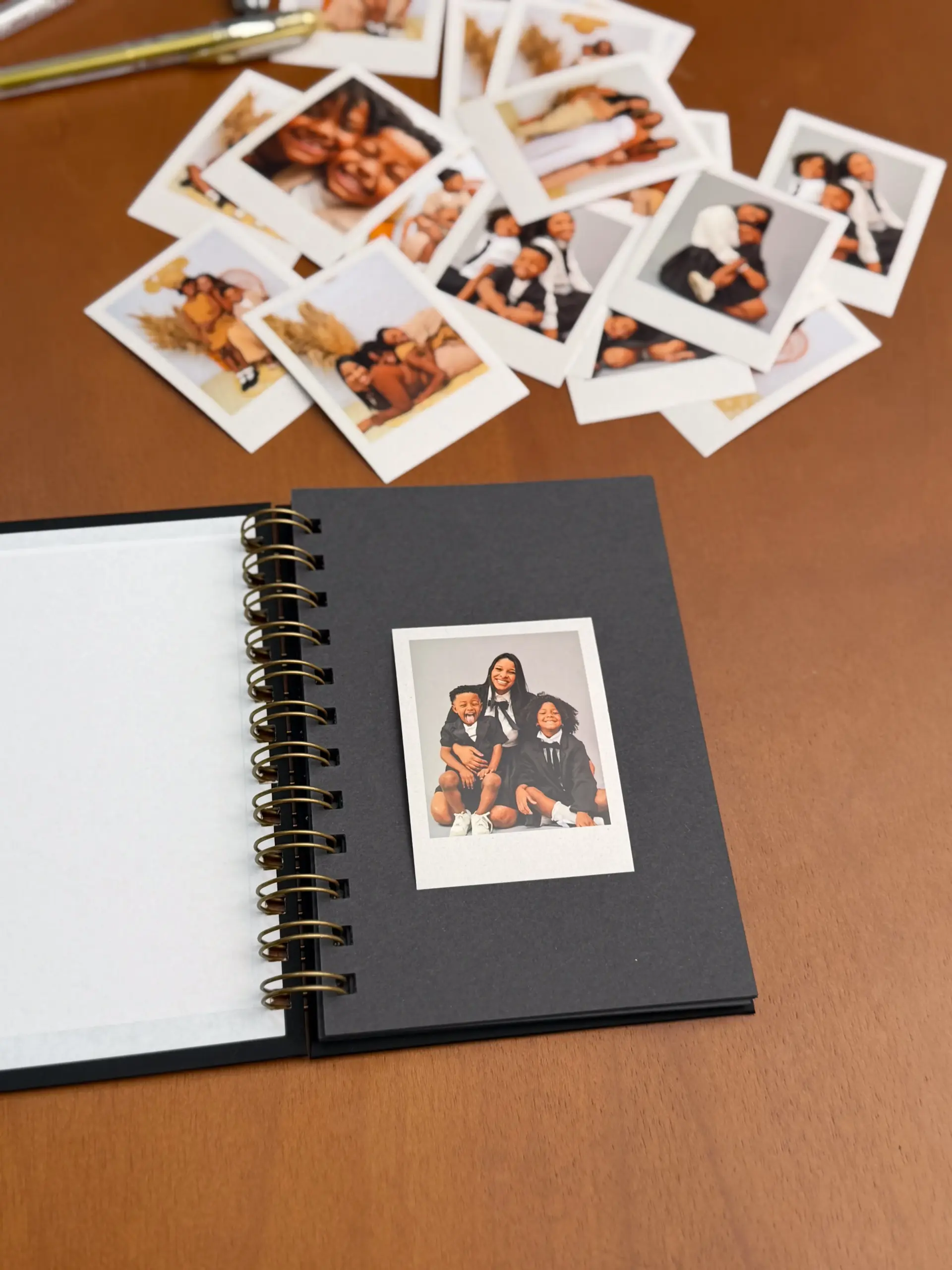 Você consegue colar até 2 fotos no estilo polaroid (6x8cm) por página.