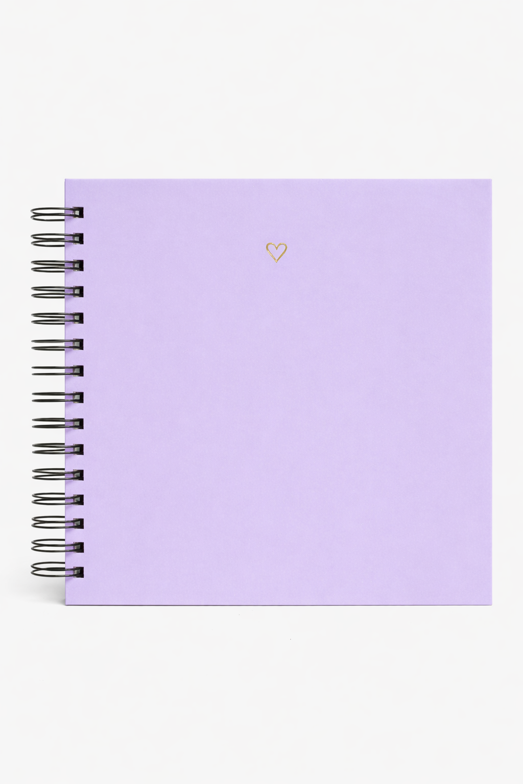 Ele tem o tamanho ideal de 20x20cm e é feito com papel de alta gramatura (180g), super resistente, folhas lisas, perfeito pra colar fotos, adesivos ou desenhar. A capa dura tem acabamento premium com gravação em hotstamping dourado. A encadernação em wire-o preto combina minimalismo e durabilidade, pra durar a vida inteira!