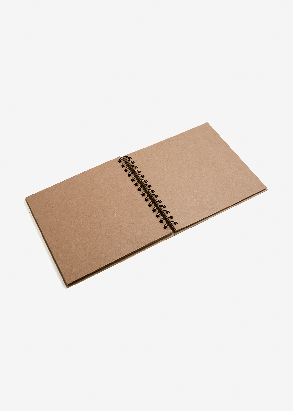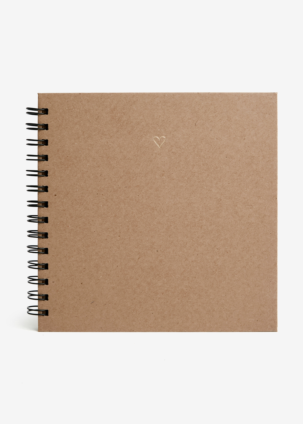Ele tem o tamanho ideal de 20x20cm e é feito com 50 folhas de papel kraft de alta gramatura (140g), super resistente, folhas lisas, perfeito pra colar fotos, adesivos ou desenhar. A capa dura tem acabamento premium com gravação em hotstamping dourado. A encadernação em wire-o preto combina minimalismo e durabilidade, pra durar a vida inteira!