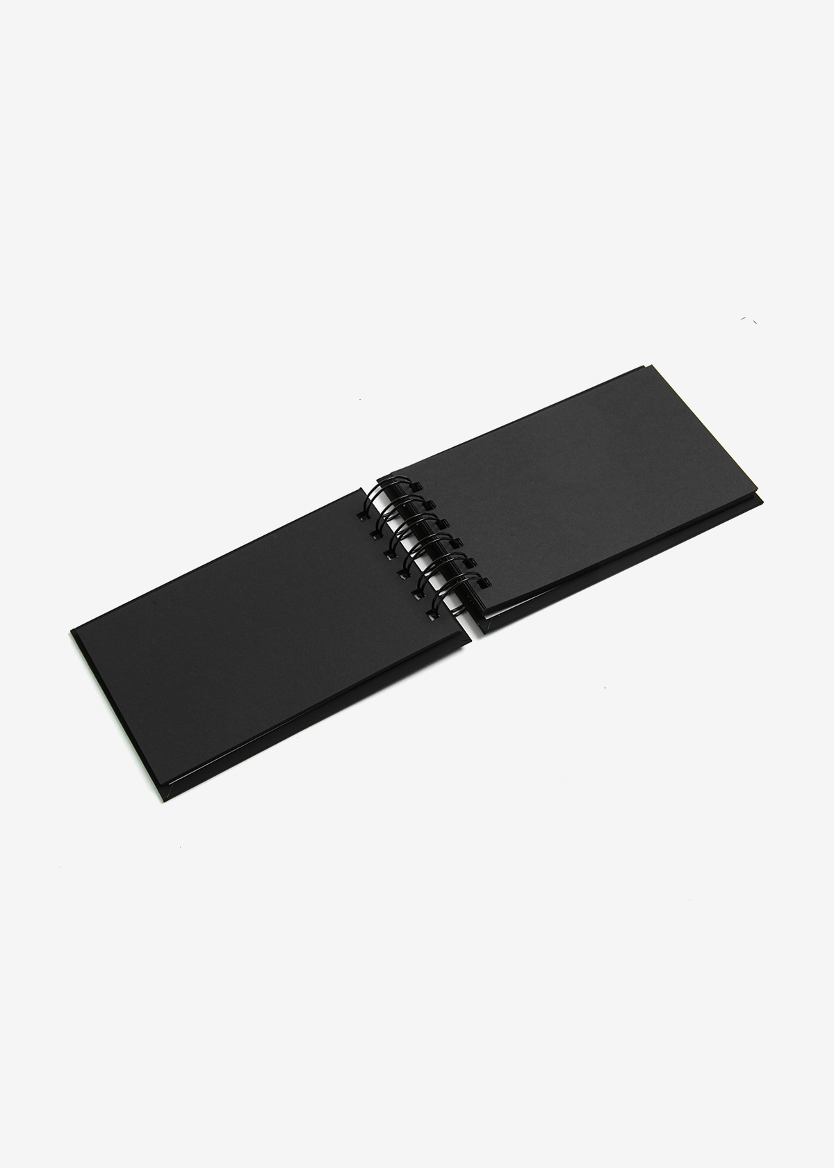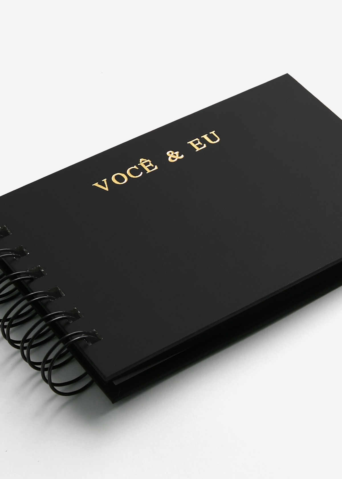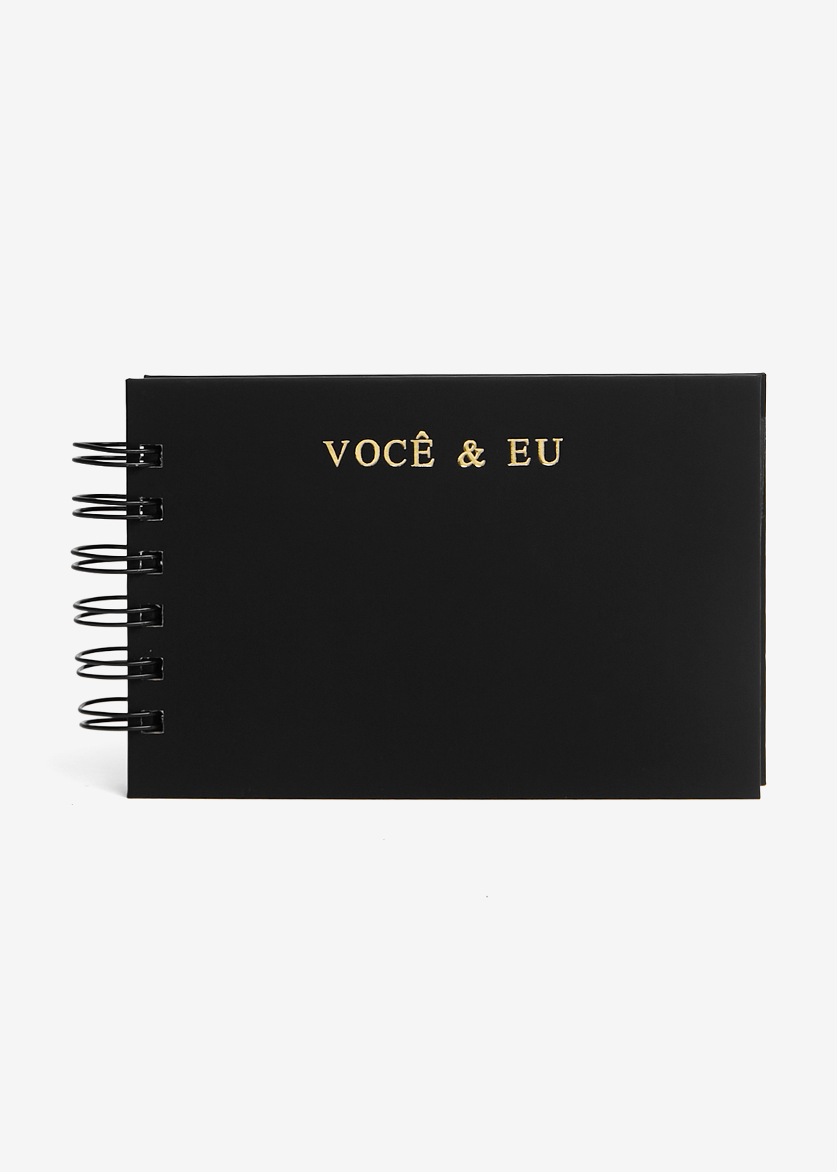 Ele tem o tamanho ideal de 10x15cm e é feito com papel de alta gramatura (180g), super resistente, 30 folhas lisas (60 páginas), perfeito pra colar fotos, adesivos ou desenhar. A capa dura tem acabamento premium com gravação em hotstamping dourado. A encadernação em wire-o preto combina minimalismo e durabilidade, pra durar a vida inteira!