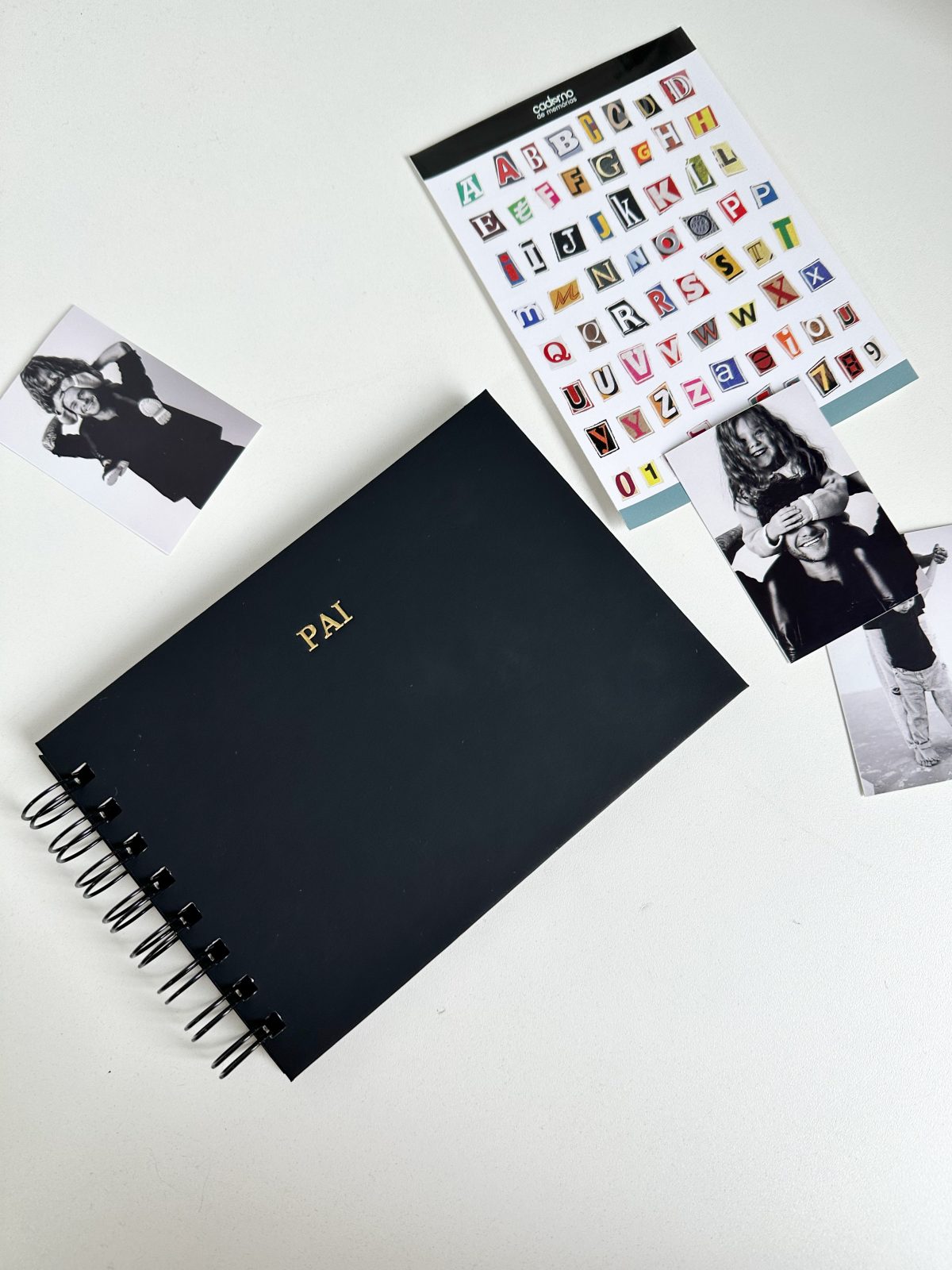 Kit Caderno Pai + 12 Fotos + Cartela de Adesivos