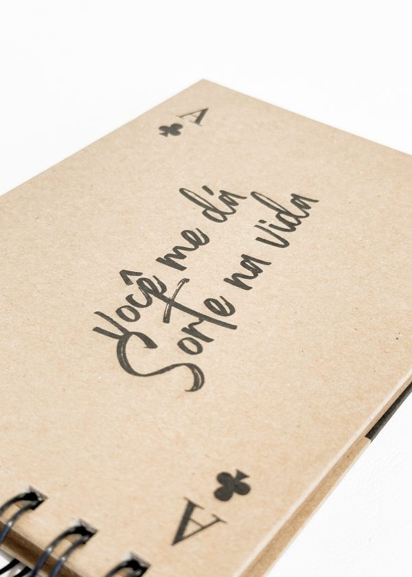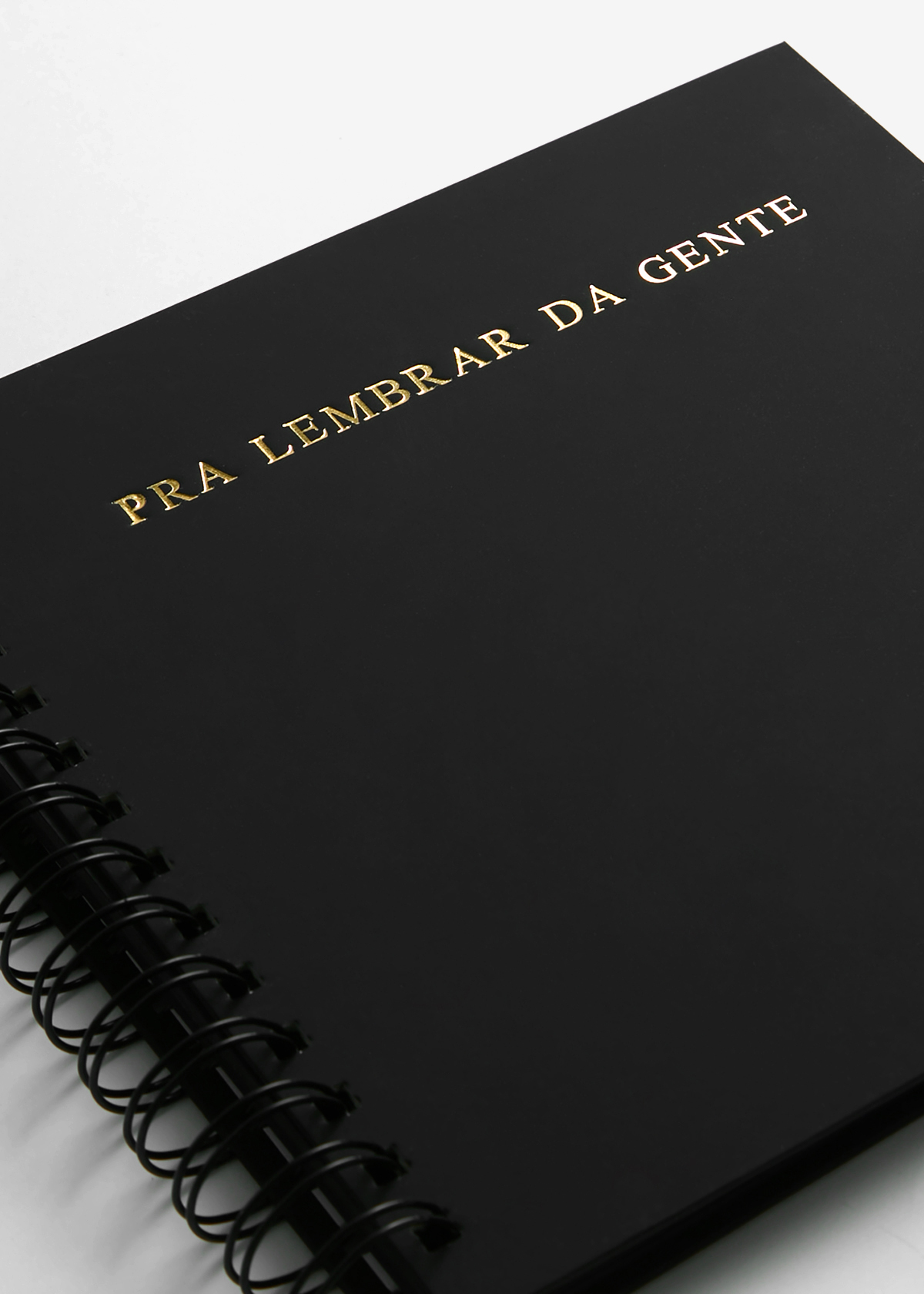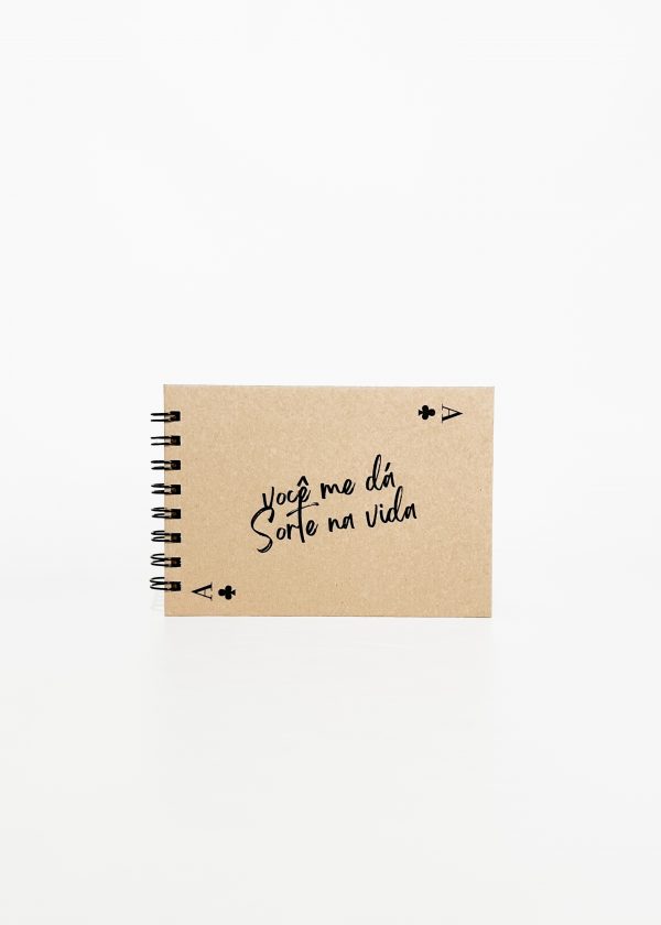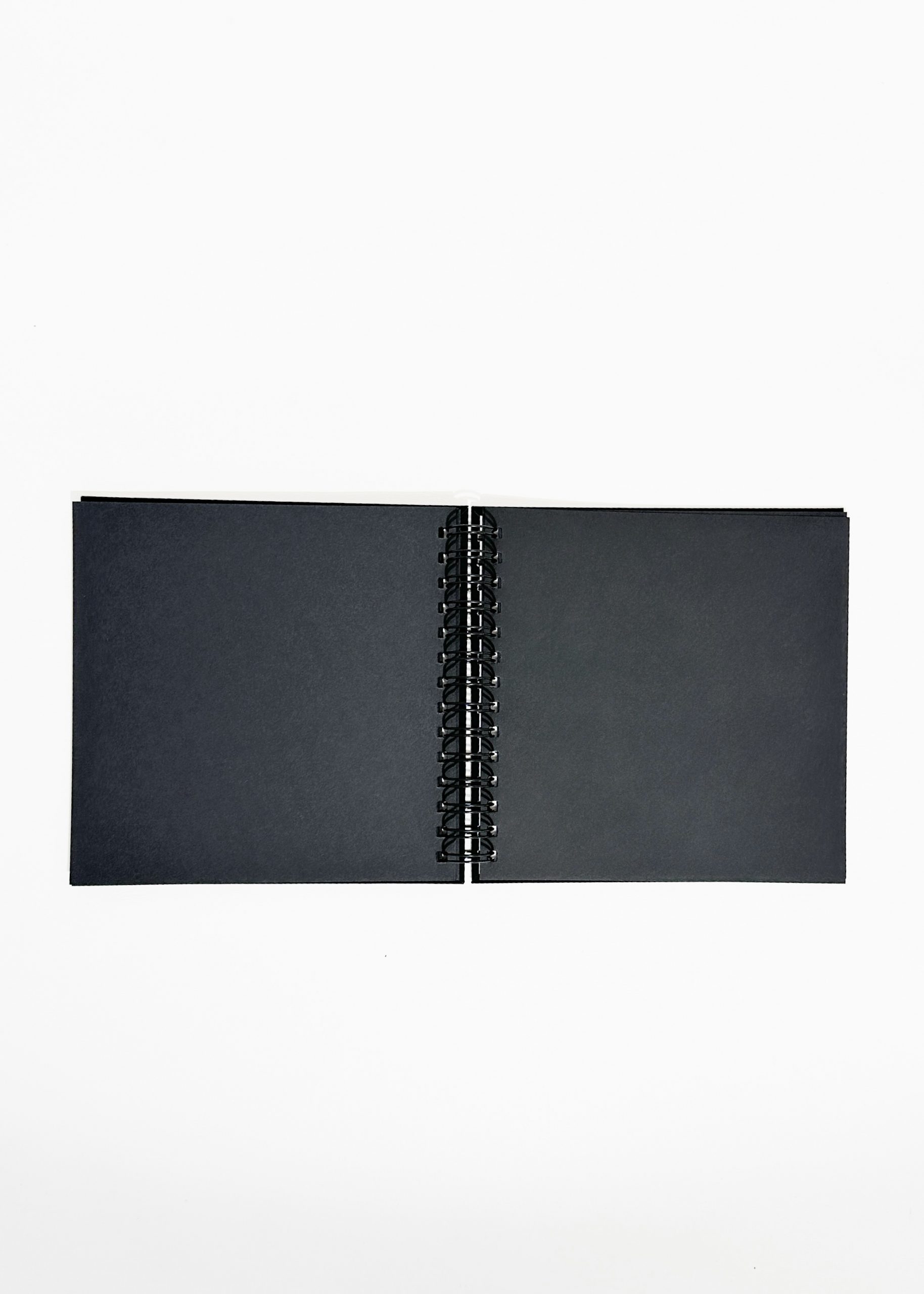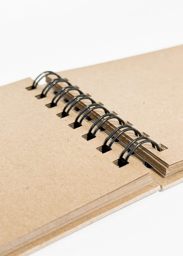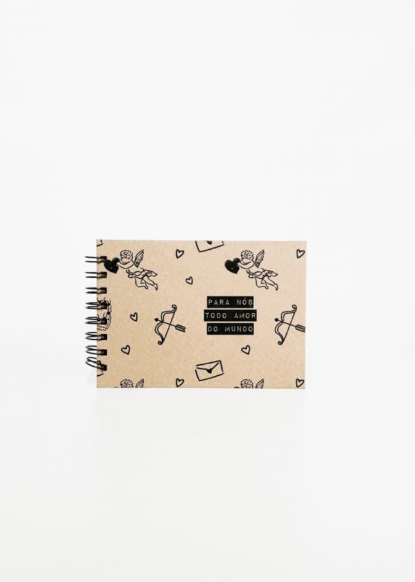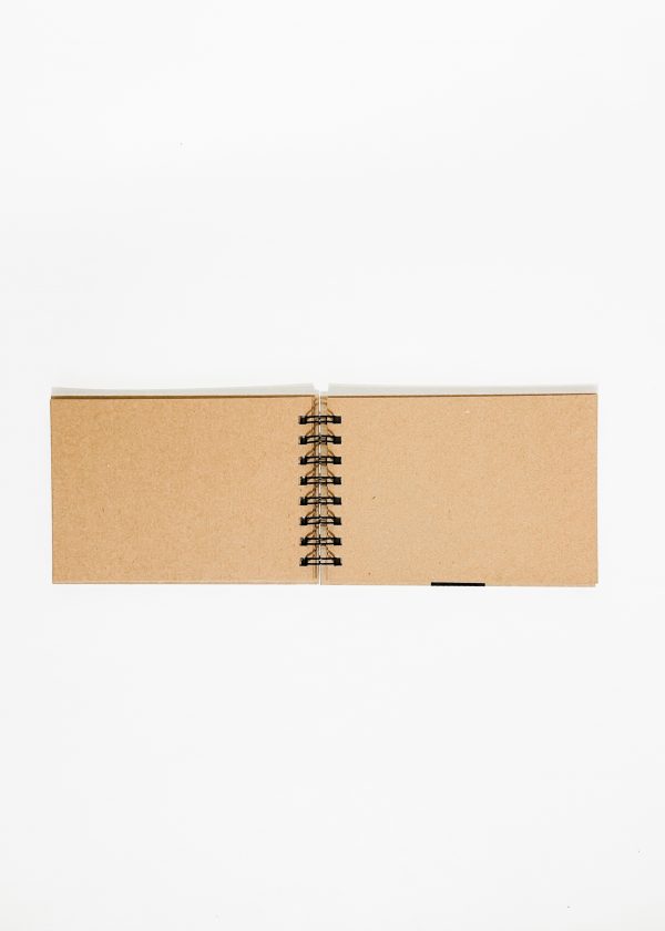 Ele tem o tamanho ideal de 20x20cm e é feito com papel de alta gramatura (180g), super resistente, 30 folhas lisas (60 páginas), perfeito pra colar fotos, adesivos ou desenhar. A capa dura tem acabamento premium com gravação em hotstamping dourado. A encadernação em wire-o preto combina minimalismo e durabilidade, pra durar a vida inteira!