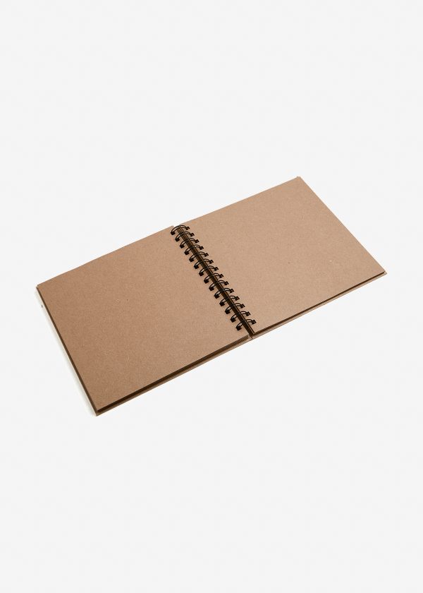 Ele tem o tamanho ideal de 20x20cm e é feito com papel de alta gramatura (180g), super resistente, 30 folhas lisas (60 páginas), perfeito pra colar fotos, adesivos ou desenhar. A capa dura tem acabamento premium com gravação em hotstamping dourado. A encadernação em wire-o preto combina minimalismo e durabilidade, pra durar a vida inteira!